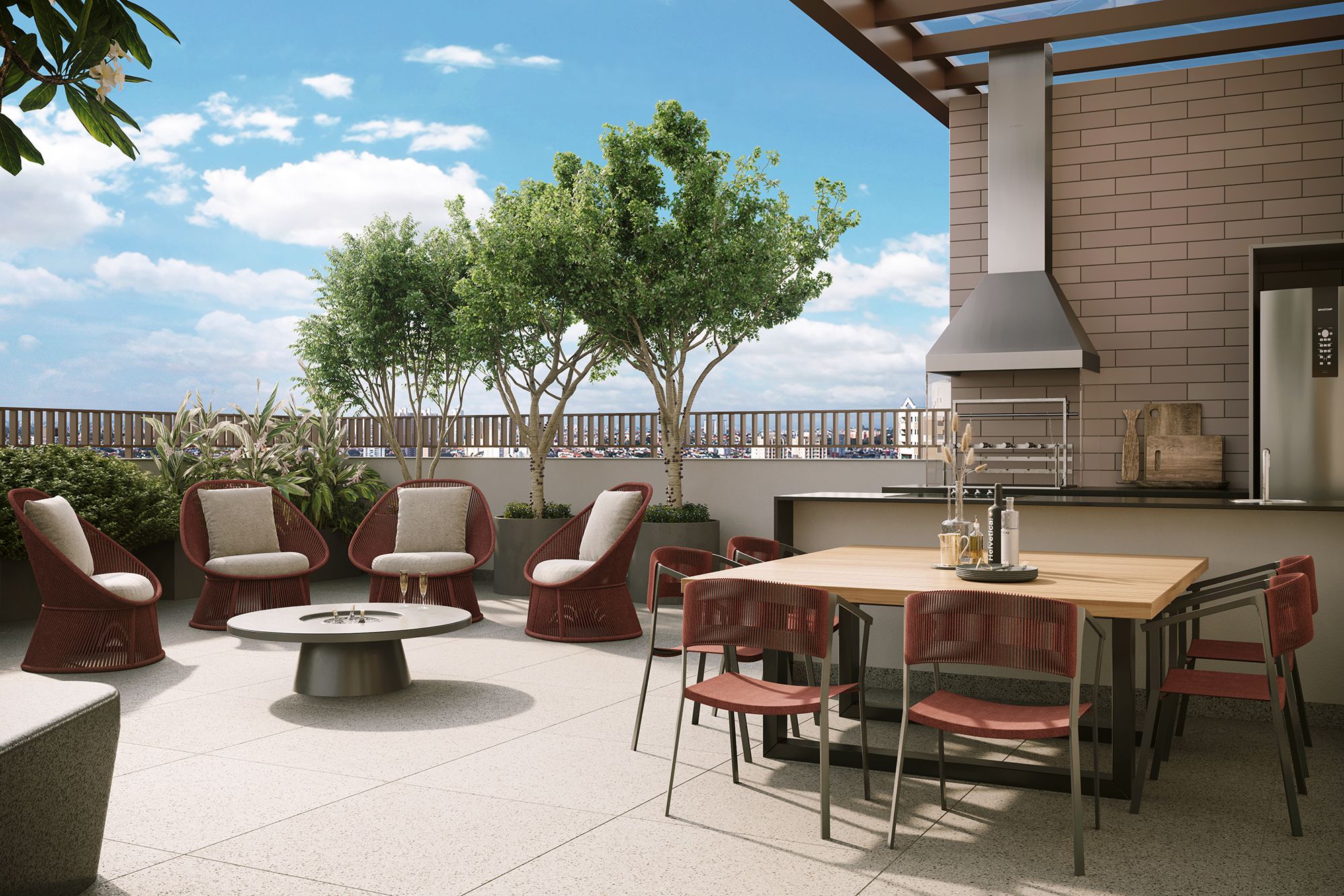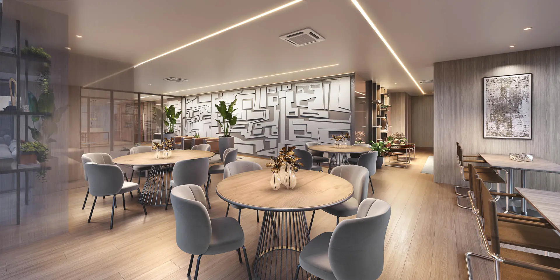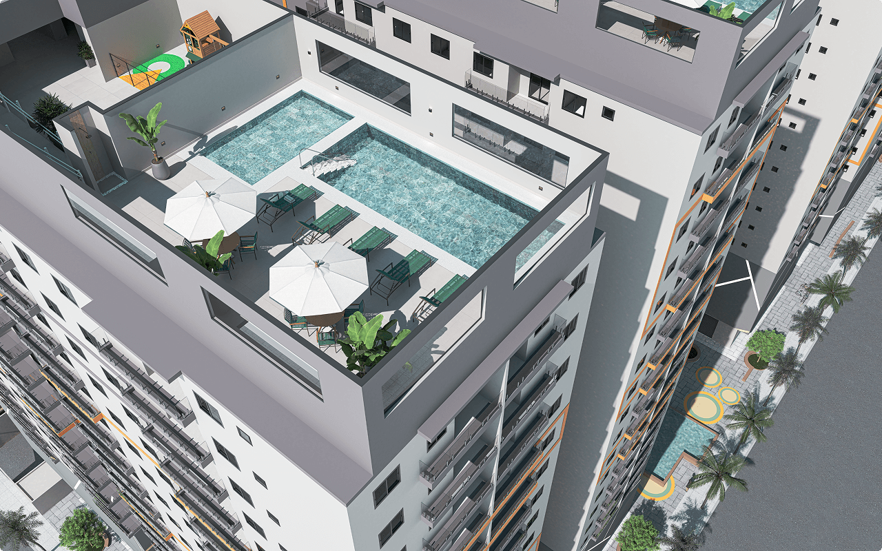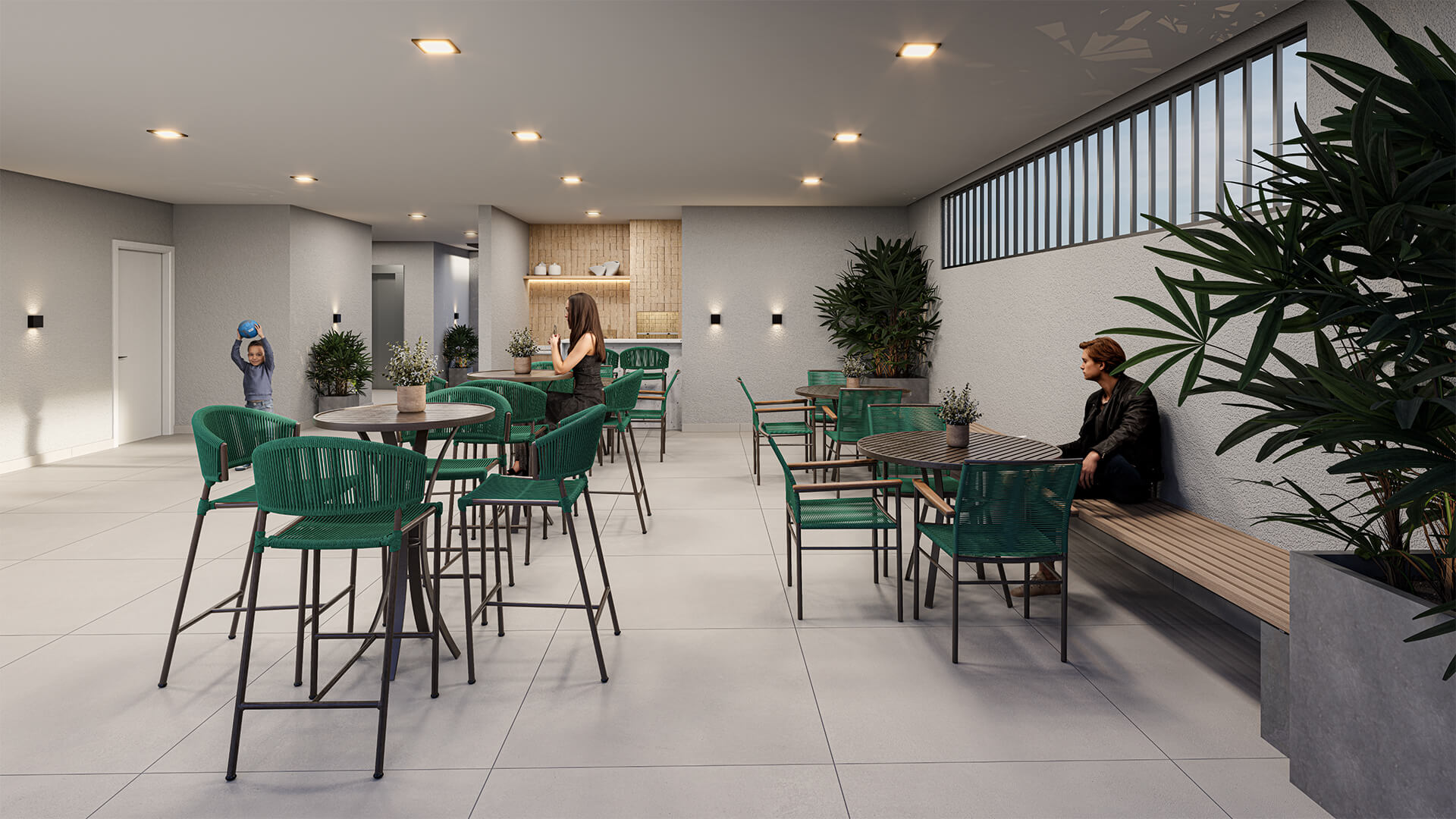 As imagens, perspectivas e ilustrações contidas neste material são meramente ilustrativas e têm como objetivo apresentar uma sugestão de ambientação e acabamento. Os móveis, objetos de decoração e itens de paisagismo representados não fazem parte do contrato. As unidades serão entregues conforme o memorial descritivo. As fachadas, áreas comuns e demais elementos visuais poderão sofrer ajustes durante o desenvolvimento do projeto executivo e da obra, respeitando os parâmetros legais e técnicos. Sujeito a alterações sem aviso prévio.